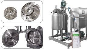 在线式弥散泵是通过转子高速平稳的旋转,高频效应产生真空,由于压力阶梯差形成负压会抽取粉末,把粉末均匀的吸入料斗或工作腔,并使其均匀的分布在快速流动的液流中,在液流中粉末被瞬间完全湿润,杜绝死角现象,使产品的均一性更好,不产生团聚块状物。物料在容器外循环往复处理或在线一次性处理完成以上工作过程,最终使不相溶或难相溶的两相或多相迅速、均匀、细腻地完成分散、乳化、溶解的工艺过程,与成熟的配方和合理的添加剂配合,最终得到高品质、稳定的产品。